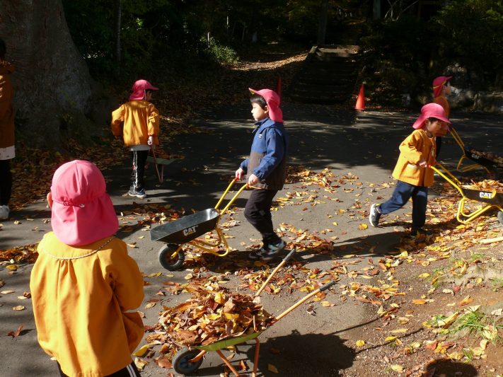おいもに付いた土を洗って、落ち葉も集めて、たき火の準備をします。