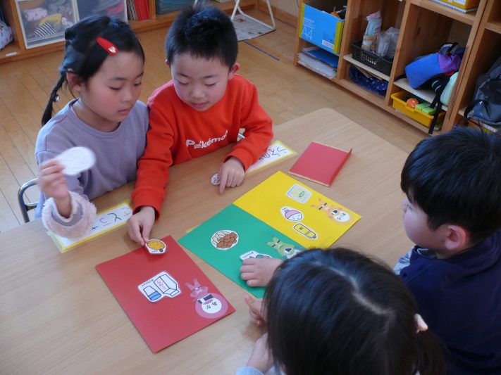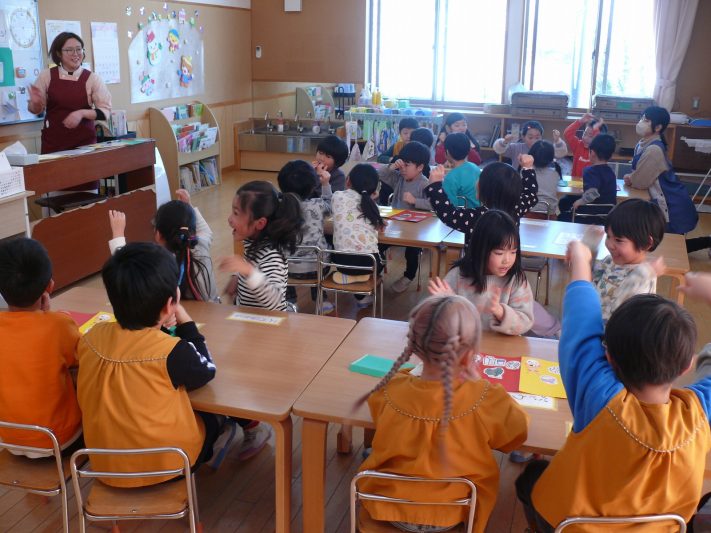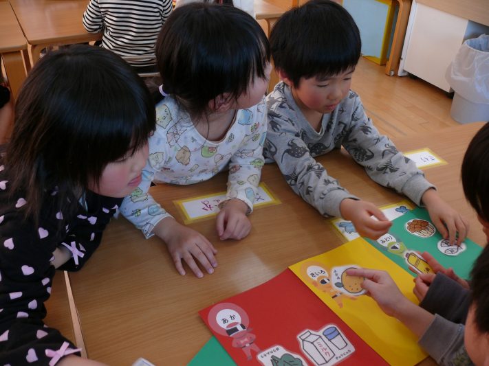 赤・緑・黄色のグループに分けるクイズで楽しく学びました。