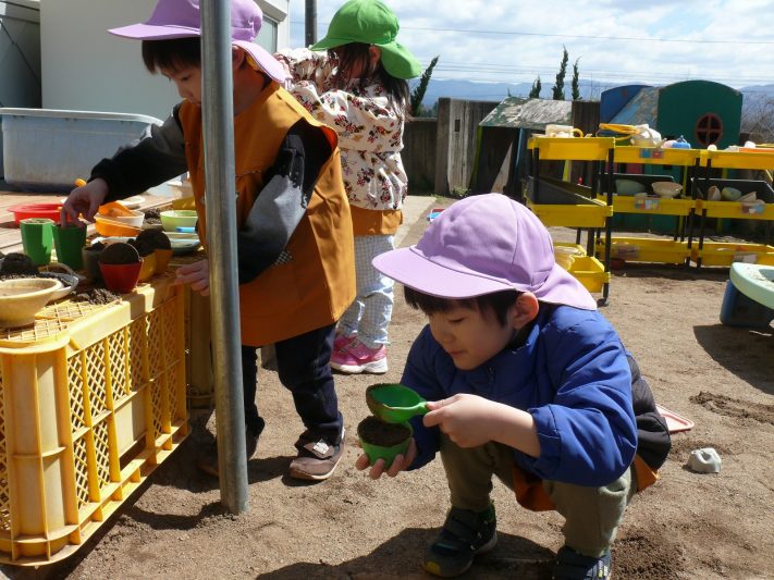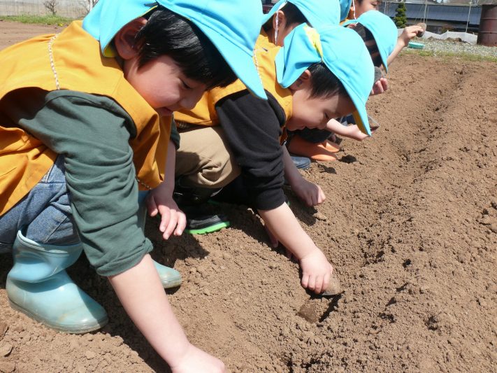 ひまわり組さんが、園の畑に種芋を植えてきました。