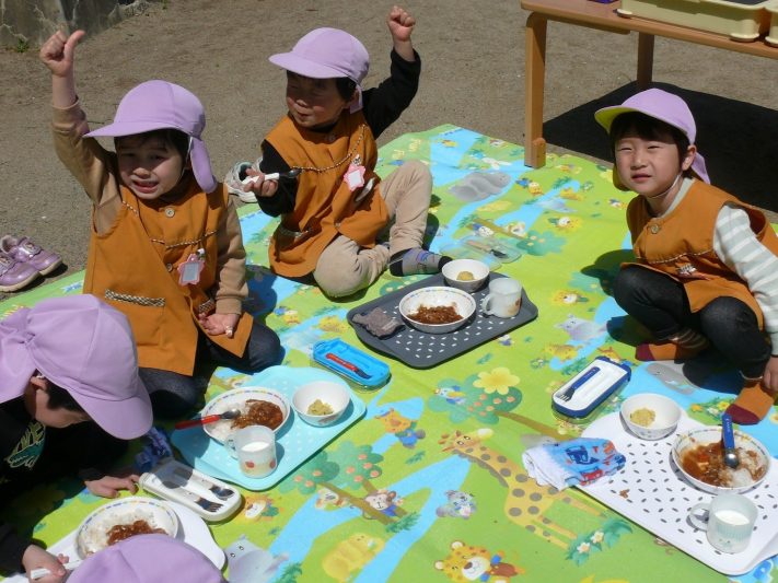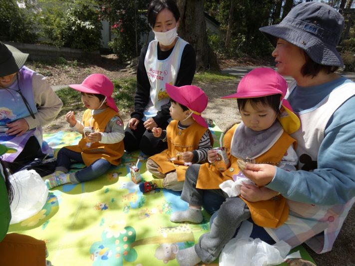 お花見をしながらおやつを食べたり、給食を食べたりして楽しみました。